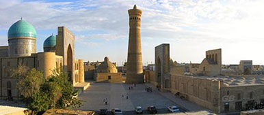 Poikalon (XII - XVI c) - ensemble in the center of old Bukhara - includes the cathedral mosque "Kalyan Mosque", "Miri Arab" madrassah and the Kalyan minaret (46 m). Lyabi - Hauz (XVI - XVIIc) - a complex with Nodir - Devon Begi madrassahs big pool surrounded by trees.